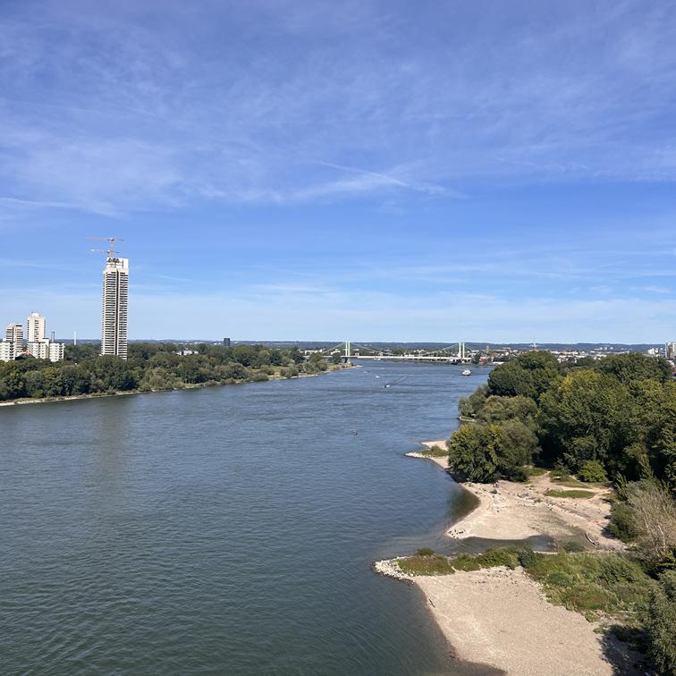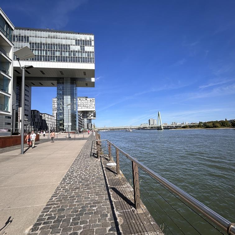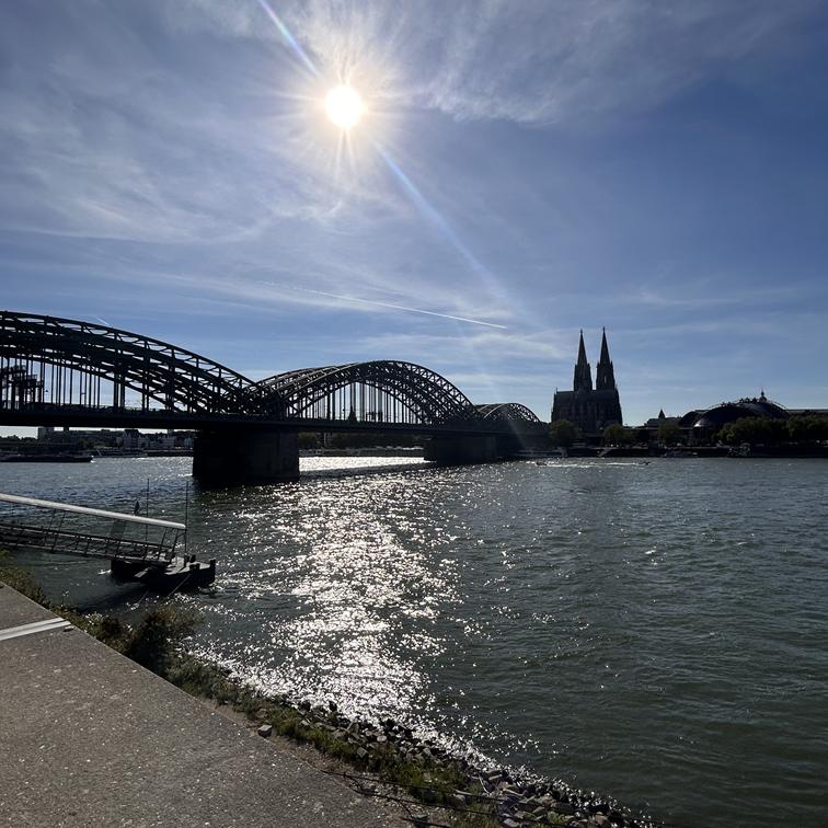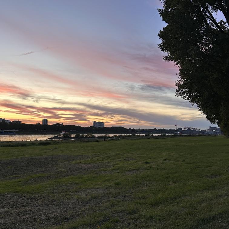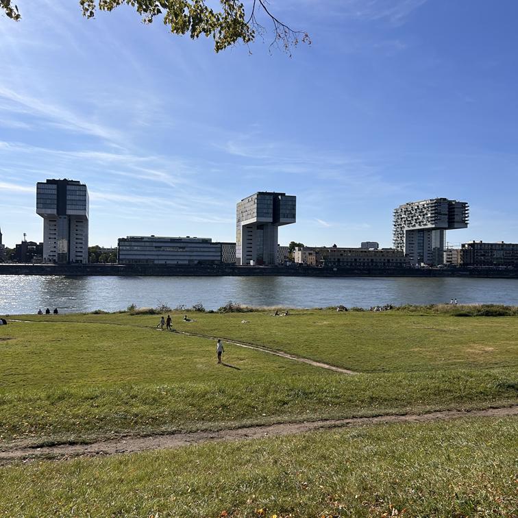 Auf dem Rückweg radelten wir entlang der anderen Rheinseite mit tollem Blick auf die Hohenzollernbrücke und den Dom. Von den Poller Wiesen aus genossen wir die Aussicht auf den Rheinauhafen – mit einem Eis in der Hand ließen wir den Tag gemütlich ausklingen.