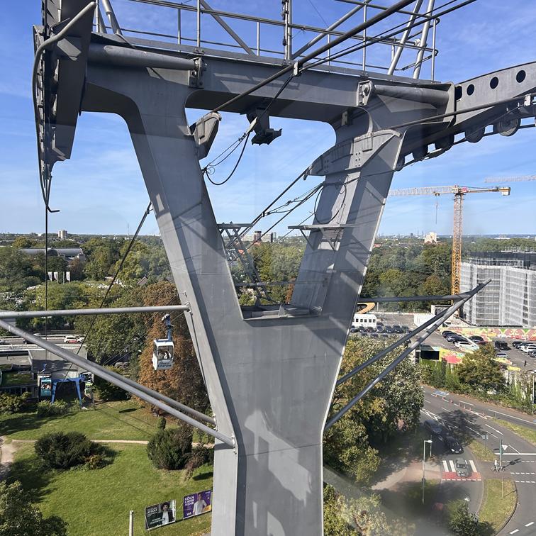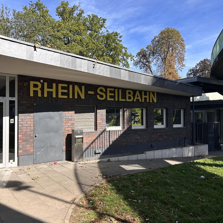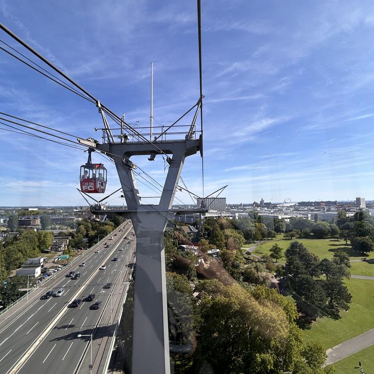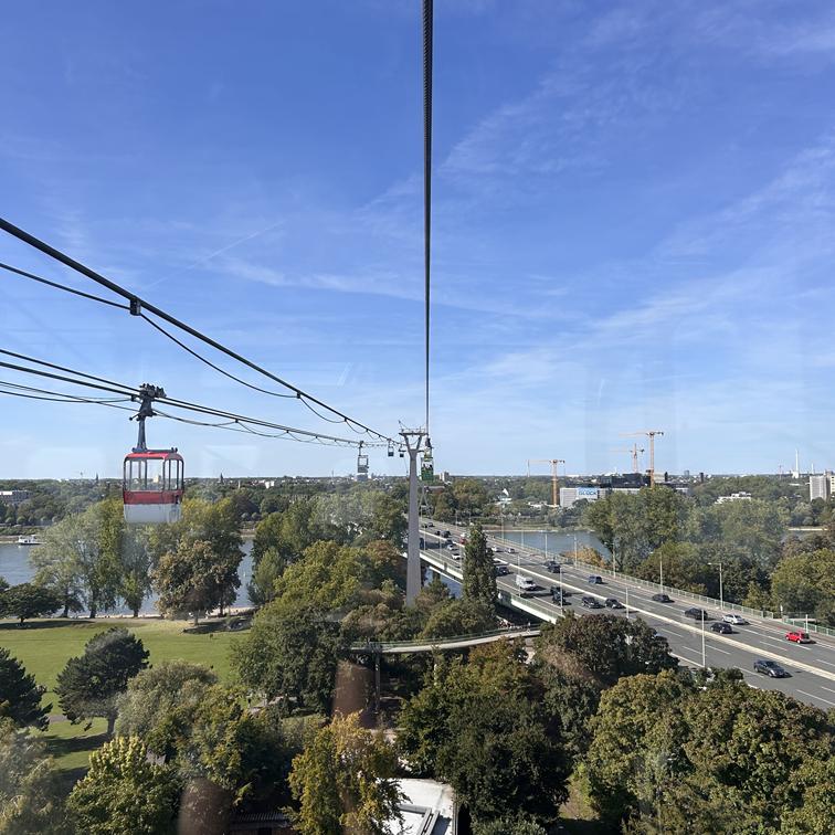 Weiter ging es zur Rhein-Seilbahn, mit der wir einmal über den Rhein schwebten.