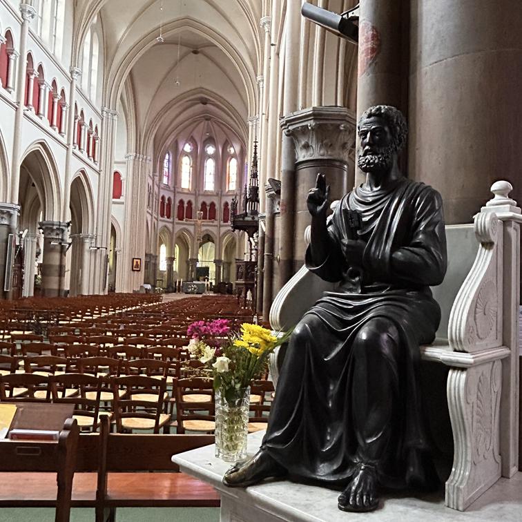 In Calais angekommen, parkten wir zentral und starteten unsere Stadtbesichtigung. Zuerst ging es zur katholischen Pfarrkirche Notre-Dame, die im 15. Jahrhundert erbaut wurde. Leider konnten wir sie nur von außen besichtigen, aber schon das war beeindruckend.