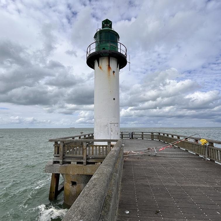 Weiter Richtung Küste besuchten wir den Phare de Calais, einen Leuchtturm in der Altstadt in Hafennähe – ein wichtiges Wahrzeichen für die Schifffahrt am Ärmelkanal. Danach ging es an den Strand zur Jetée ouest, wo wir einen weiteren Leuchtturm besichtigten. Bei klarer Sicht kann man von hier sogar die Kreidefelsen von Dover sehen – wir konnten sie immerhin erahnen.